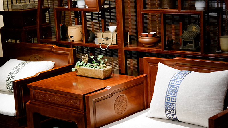 銘仁坊家具均為核桃木制作。核桃木,和道,木中君子,如玉溫潤,高古拙璞,內(nèi)斂含蓄,紋理若隱如現(xiàn),與微黃的顏色相匹配。