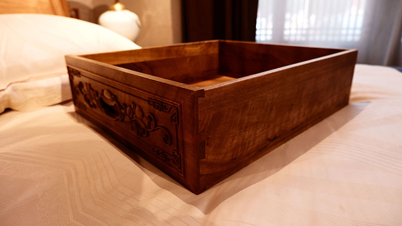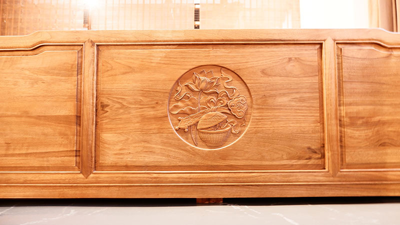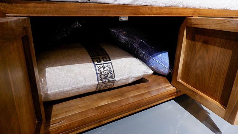 銘仁坊家具均為核桃木制作。核桃木,和道,木中君子,如玉溫潤,高古拙璞,內(nèi)斂含蓄,紋理若隱如現(xiàn),與微黃的顏色相匹配。